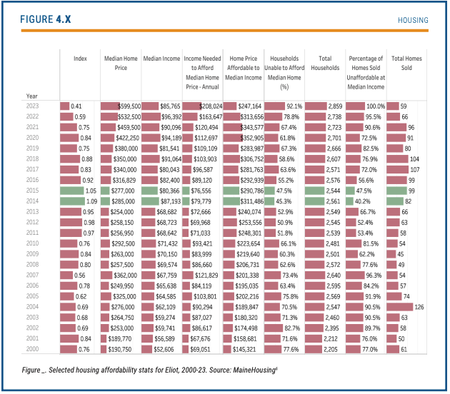 In Eliot, Maine, the 2025 Comprehensive Plan revision highlights a severe housing affordability crisis. The median home price in 2023 was $599,500, unaffordable for 92.1% of Eliot households. Shockingly, every home sold that year went for even more, signaling a dire situation.